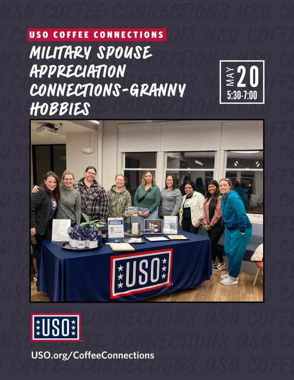 Calling all military spouses 💙 USO Great Lakes is hosting a Military Spouse Appreciation Coffee Connections just for YOU! ☕✨ Come celebrate, connect, and unwind with a fun Granny Hobbie craft activity—no experience needed, just bring yourself and a willingness to have a good time. Spots are limited, so be sure to register and join us for a relaxed, creative hangout. We can’t wait to spend time with you! #MilitarySpouseAppreciation #USOGreatLakes #CoffeeConnections #StrongerTogether #theUSO