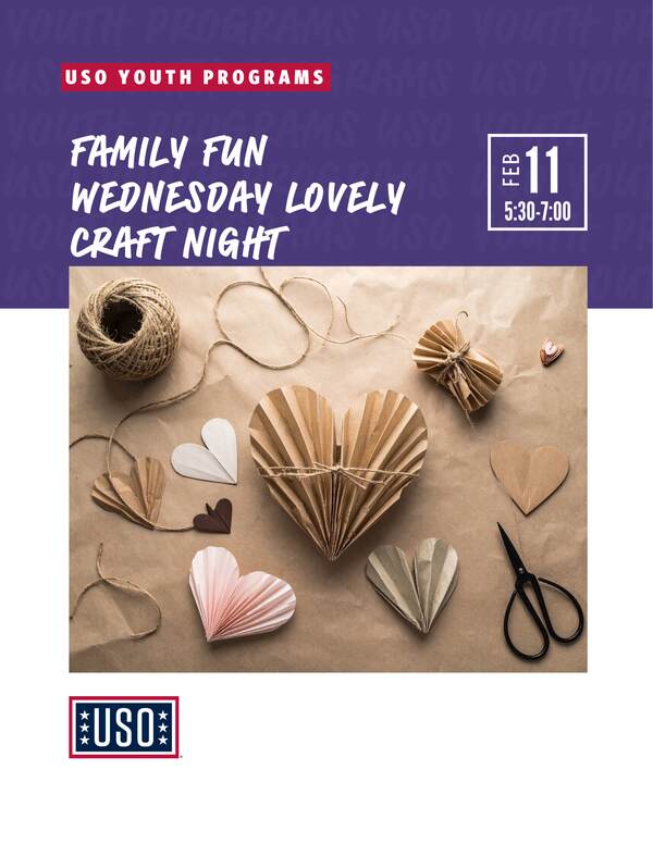 🎨💖 USO Great Lakes is hosting our family-favorite Wednesday Craft Night! This week we’ll be creating “Lovely” art—bring the whole family and enjoy exclusive access to the center for registered guests only. 👉 Please register for the number of children who will be participating in the craft.